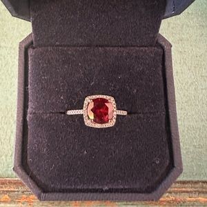 Sterling silver ring with garnet stone and cubic zirconia chips