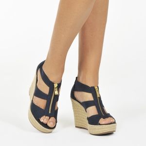 New, never worn MK Damita wedges in denim and gold hardware. Size 8.5. Will be shipped in box. Last photo for reference only.