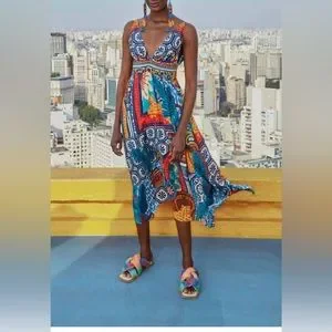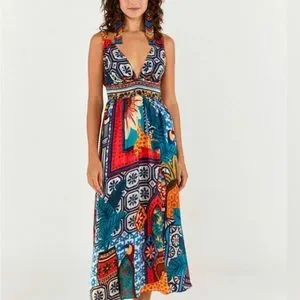 Forest Tiles V-Neck Midi Dress by FARM Rio NWT size L. Sold out and hard to find. This dress is stunning!
