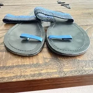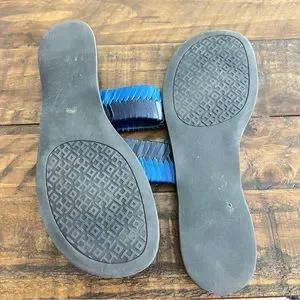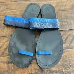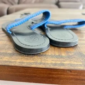 Tory Burch Neptune Baltic Blue Bi-Color Woven Flat Sandal