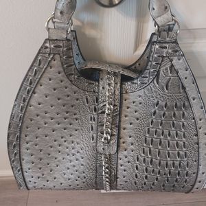 CATO Women's Faux Crocodile Print Large Fashion Gray and Black Handbag