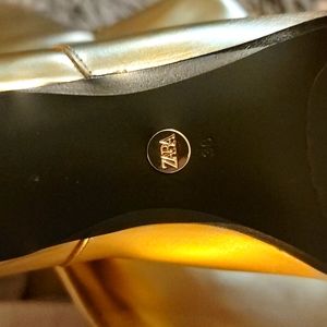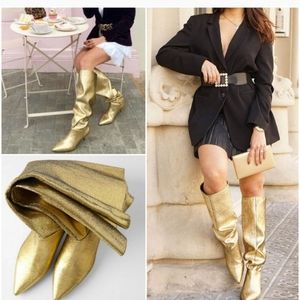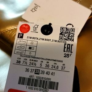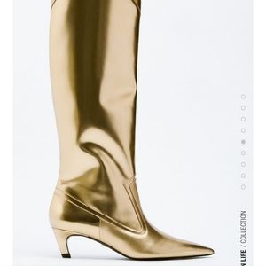 Zara NWT 38 7.5 Gold metallic patent leather boots cowboy heels patent b…