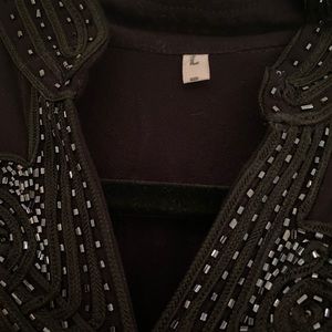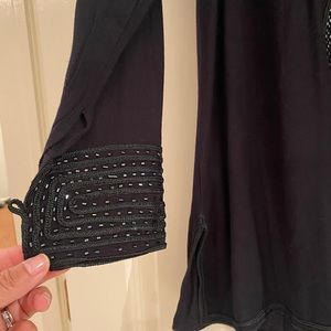 Beautifully embroidered black tunic, long sleeve, cotton rayon mix. Nice detail on the she of the sleeves. Made in India. Size small great for a dressy night out.