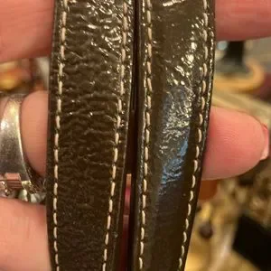 Very gently carried. 3 inside pockets- 2 small outside. Feet on bottom