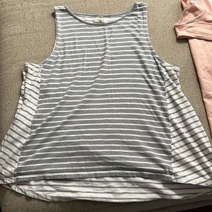 Adorable set of two tank tops that are both in great condition! One is gray and white striped, and the other is solid pink.
