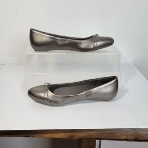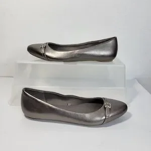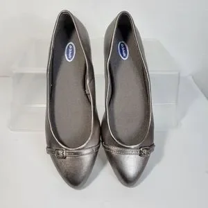 Womans Dr. Scholls Ballet Flats Pewter/Silver Size 6 Buckel Detail Pointy toe