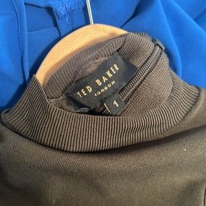 Sleeveless khaki green dress with printed skirt from Ted Baker. Size 1.