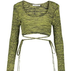 This crop top from Christopher Esber is the perfect starting point for a bold space-dye look. The ribbed-knit style features removable sleeves and attached waist ties. Style with the matching maxi skirt.