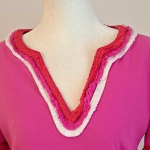 Trina Turk Short Sleeve Fringe NecklineTrim Mini Dress Size 2 NWT