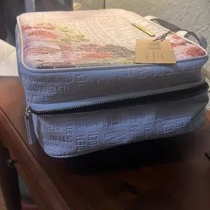 NWT Steve Madden Logo Floral Weekender Cosmetic Case-Bone