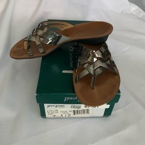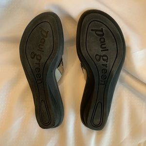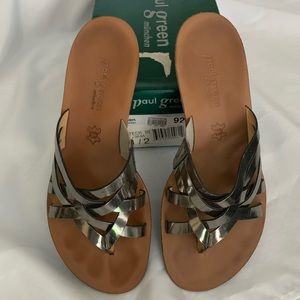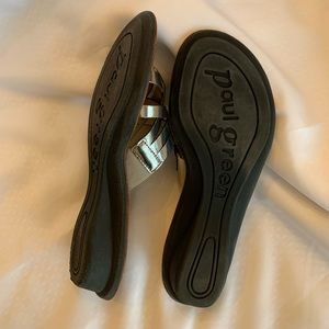 Paul Green Silver Leather Low Wedge Sandal Size 71/2