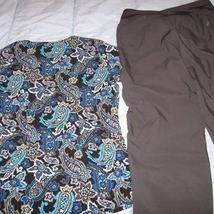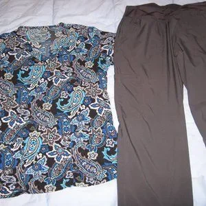 Women's Butter-Soft Scrubs Blue Paisley Sz S Top & Easy Stretch Gray Sz M Pants