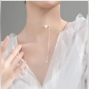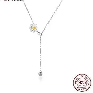 Flower Daisy sterling silver necklace adjustable design floral jewelry