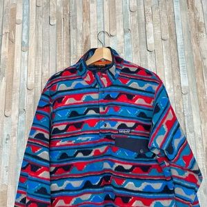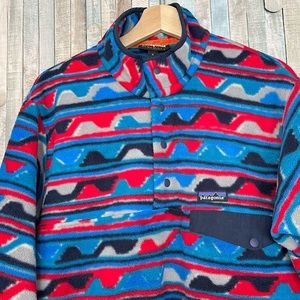 Patagonia M Synchilla Snap T Fleece Pullover Sweatshirt Jacket Delta Blue Print