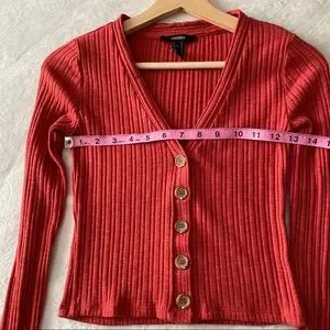 Red Ribbed Cardigan Top