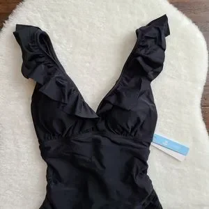 NWT Black Ruffle One Piece Cupshe Swim Suit