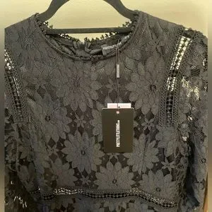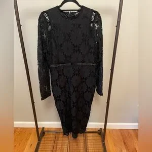 NWT Pretty Little Thing black lace long sleeve knee length dress size 12