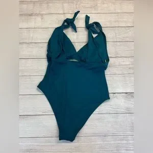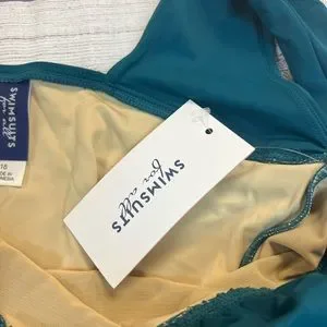 Swimsuits For All Teal Tie Shoulder One Piece Swimsuit Size 18