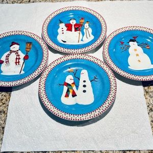 Sakura Snowman 4 pieces Assorted Stoneware Debbie Mumm Christmas Salad Plates