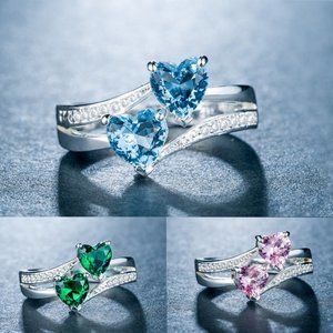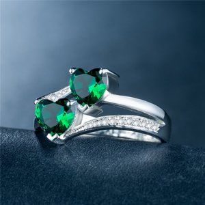 💥925 Silver Plated Green Heart Cut Emerald Exquisite Ring, GPMB1527
