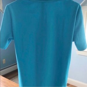 3. Chico’s V-neck top- Medium, blue. Length-22”, pit-pit-21”, sleeves 4-1/4”. 100% cotton. Machine washable.