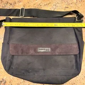 Unisex Kenneth Cole New York Canvas Laptop Bag. Used, some wear, in good condition. Adjustable shoulder strap, magnetic close flap, two extra front and one side pocket.