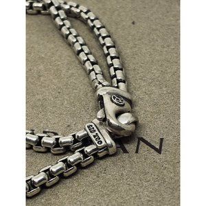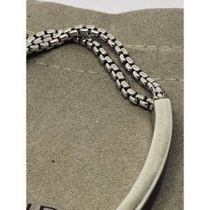 David Yurman Sterling Silver & Onyx ID Bracelet Double Box Chain Link 8.5”.