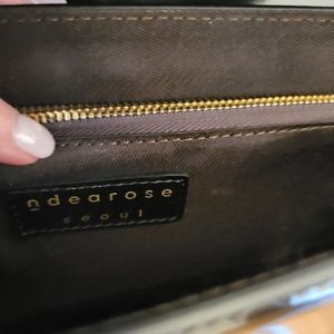 ndearose brand from South Korea. gorgeous black patent leather that would go with a variety of items. Please note that the retailer does have the option of purchasing an additional gold chain strap but this person. does not have that. Gently used. Don't forget to bundle and save.