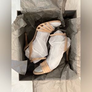 NWT. Halston Heritage Kelly Nude Sand Tan Suede Stiletto Sandals. Brand New.