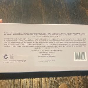 New Ace Beaute Violet Sage eyeshadow palette. Only opened once for picture to be taken. If purchased this item will be packaged appropriately to ensure safe arrival.