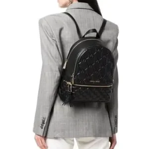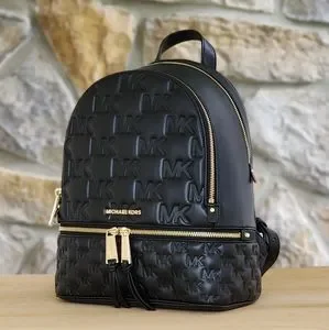 Michael Kors Rhea Zip Logo Embossed MD Backpack Black