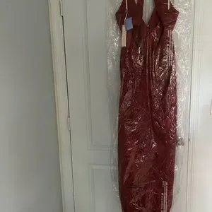Charmeuse halter bridesmaid dress - color is Cinnamon