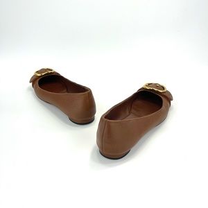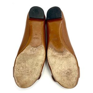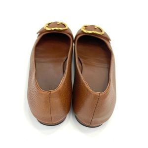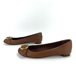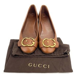 GUCCI 100% AUTHENTIC Brown Leather Gold Interlocking GG Buckle Accent Flats.