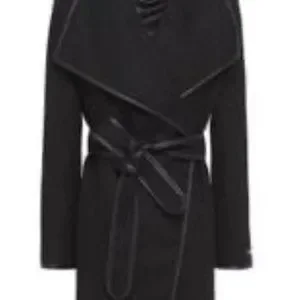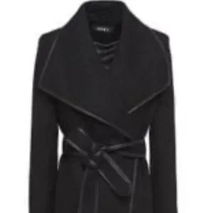 Great jacket. Beautiful dark navy with trim. Bought it , love it but too small. I am no longer a medium- but if you are you will love this warm & stylish wrap style winter coat!