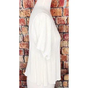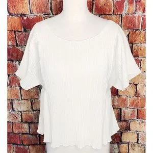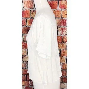 Madewell Texture & Thread Micropleat Cropped Top Ivory H8114 Women’s Small. Pre-owned in great used condition. Measurements are approximate arm pit to arm pit laying flat 16”; sleeves 7.5”; shoulders 12”; length 20”.