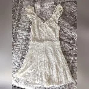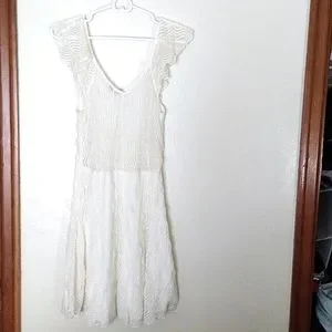 Charlotte Russe brand, lacy white, skater girl style sundress with a slight v-neck and ruffle cap sleeves. Juniors size Large, fits similar to an adult size 6. In great pre-loved condition