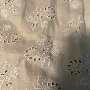 beautiful eyelet dress with ruffles at the bottom and criss cross in back