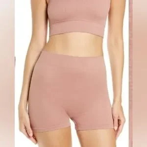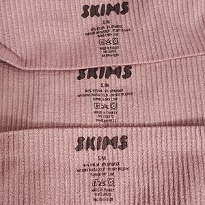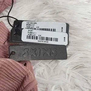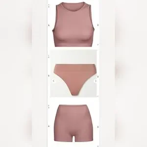 3pcs-SKIMS STRETCH RIB BUNDLE IN ROSE CLAY/NWT/S/M- THONG, SHORT & HIGH NECK BRA