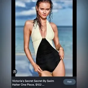 Victoria’s Secret Ruched Marilyn Monroe style Halter Top Deep Plunge Swimsuit XL