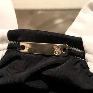 ♥️ Gold Metal Plate at bottom of Bust V plunge embossed with Signature Victoria’s Secret, entwined VS logo