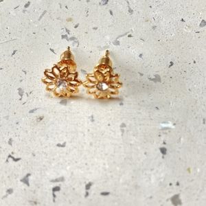 Glamorous BNWT Golden Flower Stud Earrings with Sparkling Crystal Accents