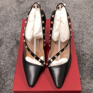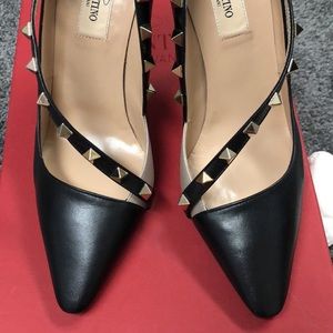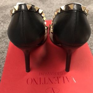 Women’s Valentino Garavani black leather pumps. Clean and comes with dust bag, 2 heel taps, 2 studs and original box