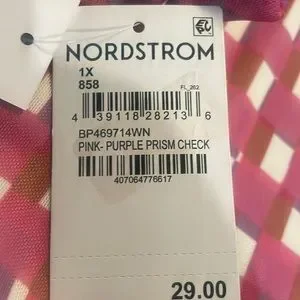 NWT pink/Purple Prism Check BP Mini Skirt, size 1X. Is fully lined & measures: 18” from side to side lying flat on one side & 16” from waistband to bottom hem. Has elastic waistband.