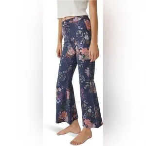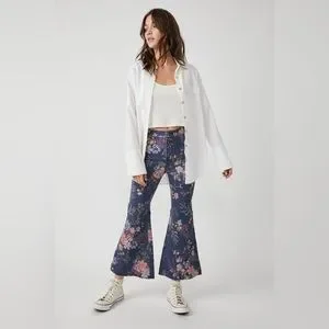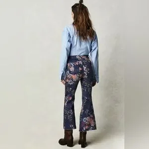 šLAST ONE! FREE PEOPLE Youthquake Printed Crop Flare Jeans Navy Combo