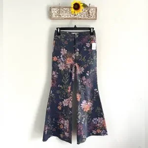 šBRAND NEW WITH TAGS- FREE PEOPLE Youthquake Printed Crop Flare Jeans Navy Combo