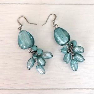 Relisted - Teal Aqua Green Cluster Dangle Stone Earrings No Tarnish 2-1/2” Drop