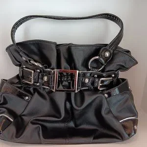 Wilson's Leather Black Cinched Top Shoulder Bag Purse With Silver Buckle