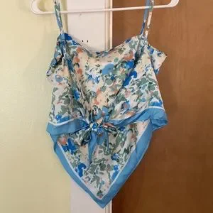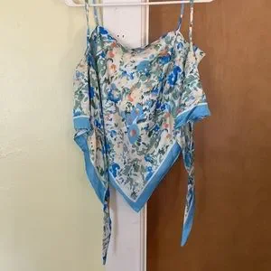 Brand New WT summery spring scarf tank top, only worn to try on but doesn’t fit. Bought from an online boutique. Misc print but gives floral vibes. Would be super cute for vacation, senior pictures, Debut Eras Tour outfit, or other summer events.