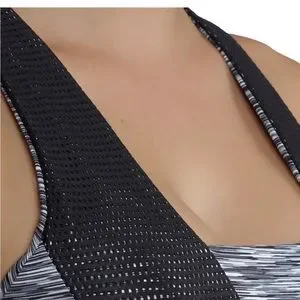 Black, grey & white high impact sports/yoga bra. Featuring: