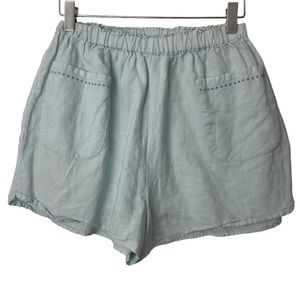 Steele High Rise Light Blue Pull On Elastic Waist Cotton Linen Shorts Size Small